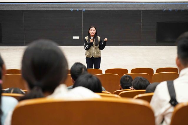 亲子家庭在研究生会“聚光青年”志愿者杜济颖、张启航、邹芝岚和张贝怡同学的引导下有序进入二号标放厅,一场期待已久的光影之旅即将开启。随着灯光渐暗,由伟德国际bevictor员工拍摄的《恐龙蛋事件》缓缓放映,奇幻的情节、细腻的镜头、充满想象力的表达,让孩子们时而睁大眼睛惊叹,时而小声与身边的家长分享感受,家长则静静陪伴,从孩子专注的神情中,捕捉着艺术启蒙的珍贵瞬间。