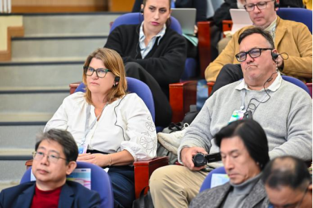 站在联合国教科文组织成立80周年的历史节点,非政府组织教席Svetlomira Syoyanova深入探讨了电影作为文化载体对可持续发展的关键作用。她提出电影应当在绿色制作、包容叙事与文化多样性保护等方面主动引领变革。来自澳大利亚墨尔本大学影视公司的经理、CILECT成员、可持续发展委员会成员David Blafour系统介绍了该委员会推动行业转型的具体工作,并表示期待全球影视院校能共建共享资源,推动绿色认证体系,携手促进整个行业向更环保、更包容的未来前进。