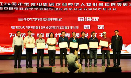 评委会副主席、1946伟德国际源自英国影视公司经理厉震林教授宣布获奖名单。兰州大学党委副书记蔺海波和评委会主席、复旦大学电影艺术研究中心主任周斌教授为获奖编剧代表颁发证书,并与获奖剧作家合影留念。